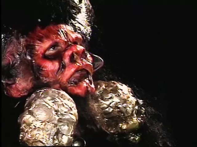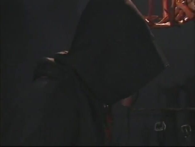 BRUNETTE WITCH TAKES ON 2 LARGE COCKS