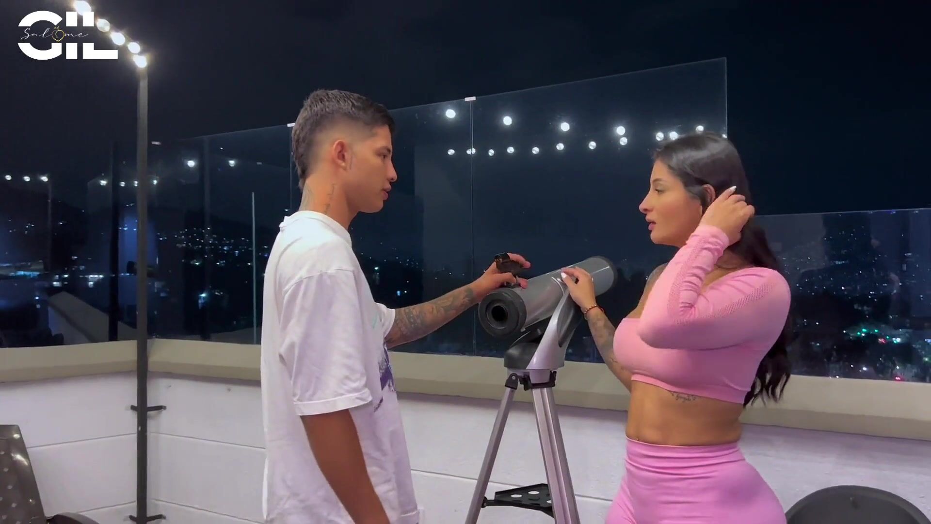 . I'm exercising and my neighbor comes to look at the stars with his telescope, he tells me if I want to see them so I decide to try his telescope, I realize that he is looking at my body with desire so I decide to fuck him for the experience