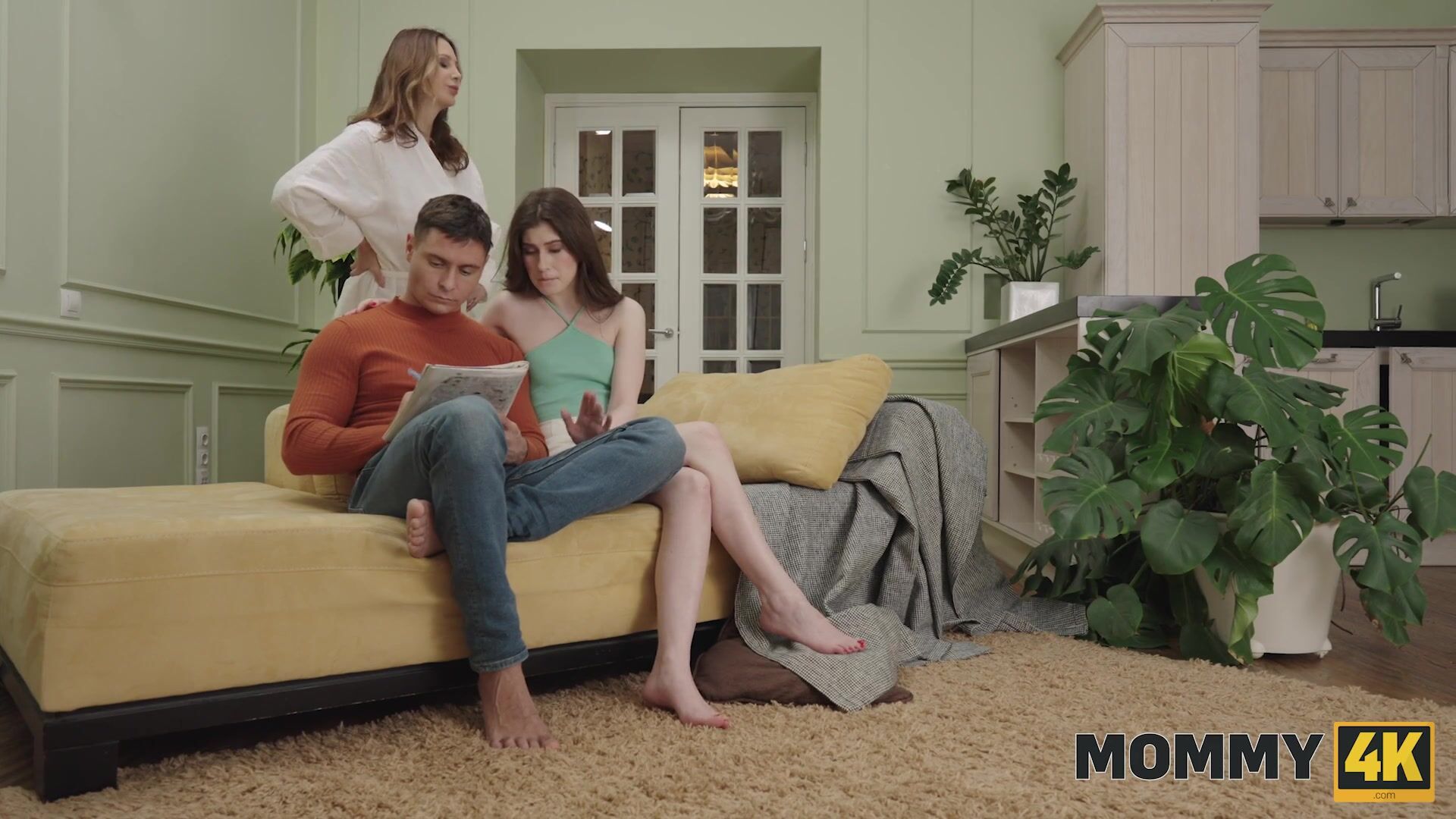 . Mommy is in a bad mood. She sees the inexperienced ones loving each other, flirting, wanting to have sex. Mommy tries on some sexy costumes to impress Guy. But Boyfriend is not impressed. Mommy is angry. She sends the Girl to the cafe to buy dinner, and she roughly seduces Guy.