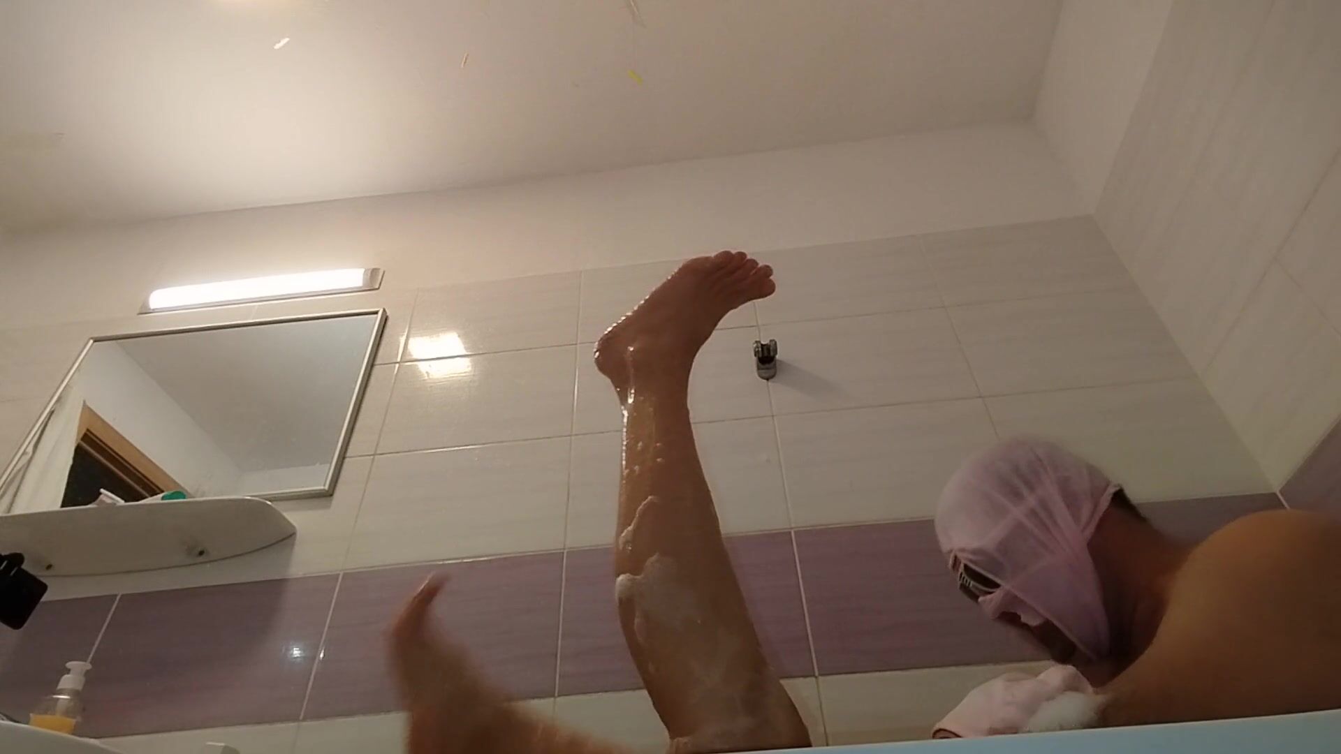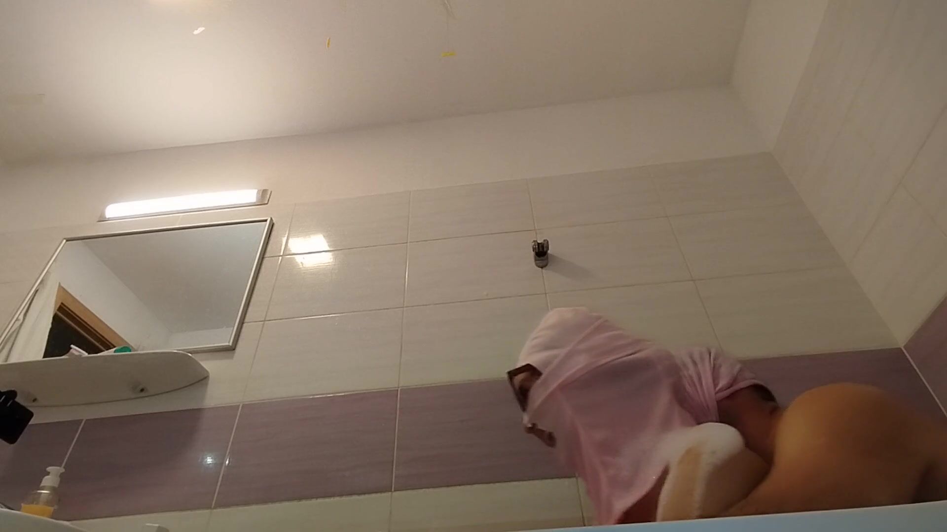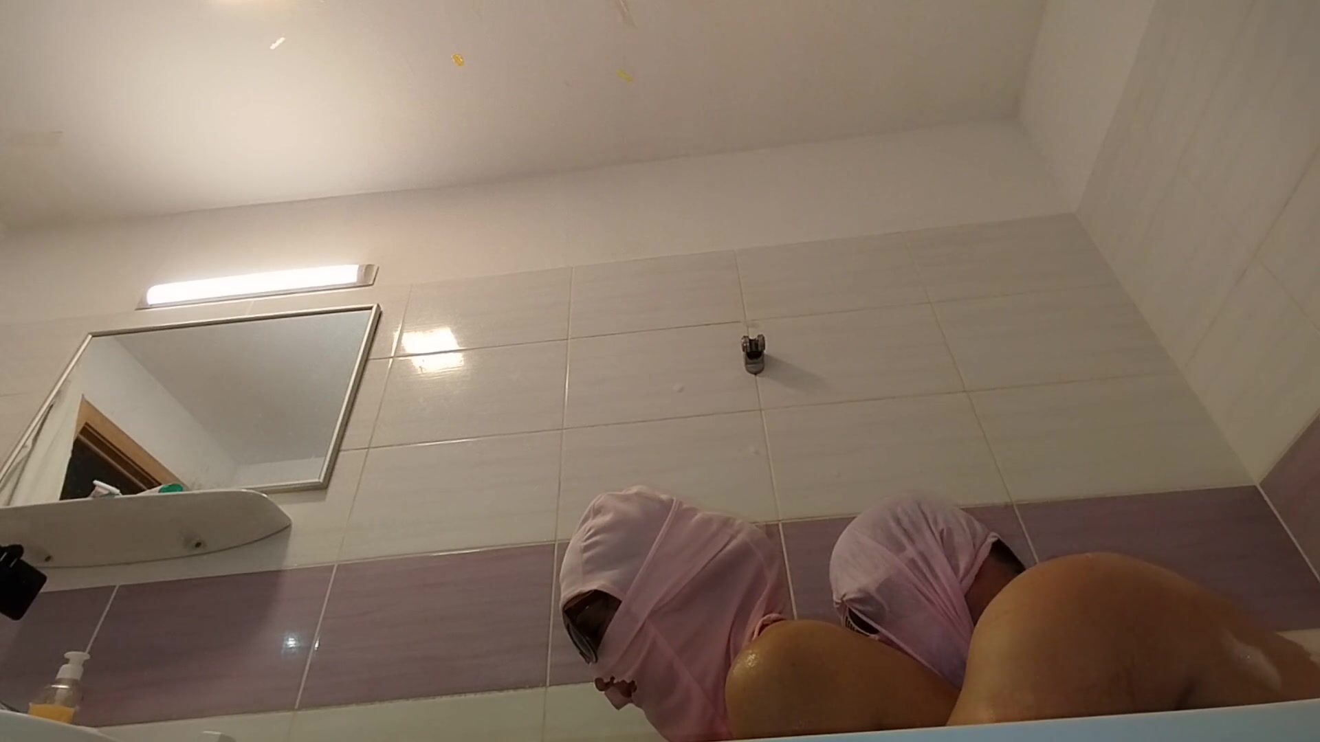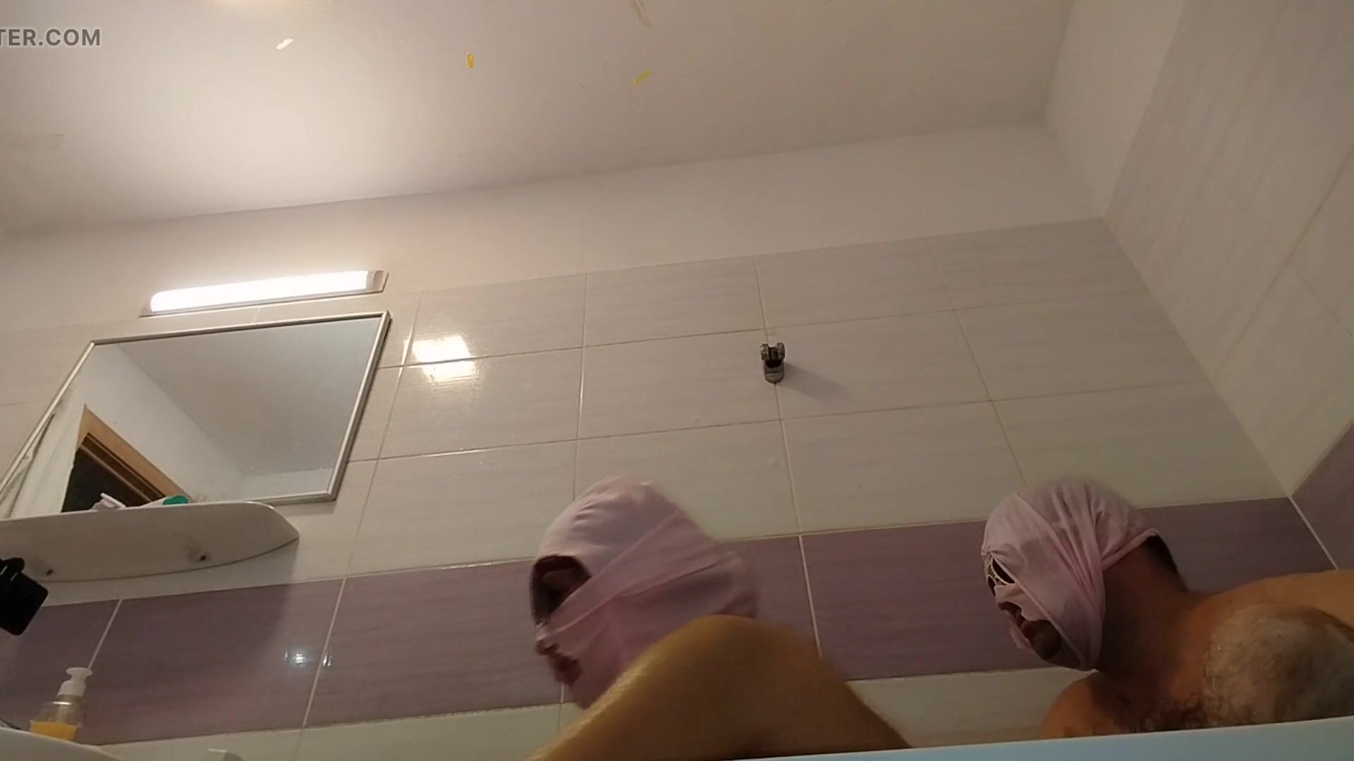 AMATEUR COUPLE TAKES A BATH, WIFE WITH HAIRY PUSSY, BIG ASS, BIG TITS.