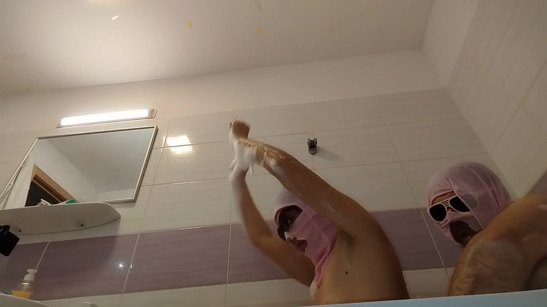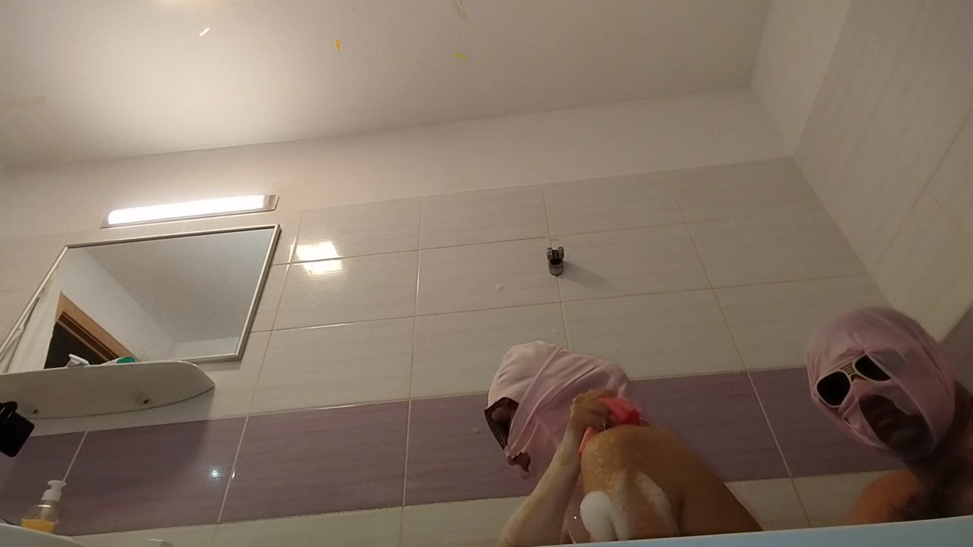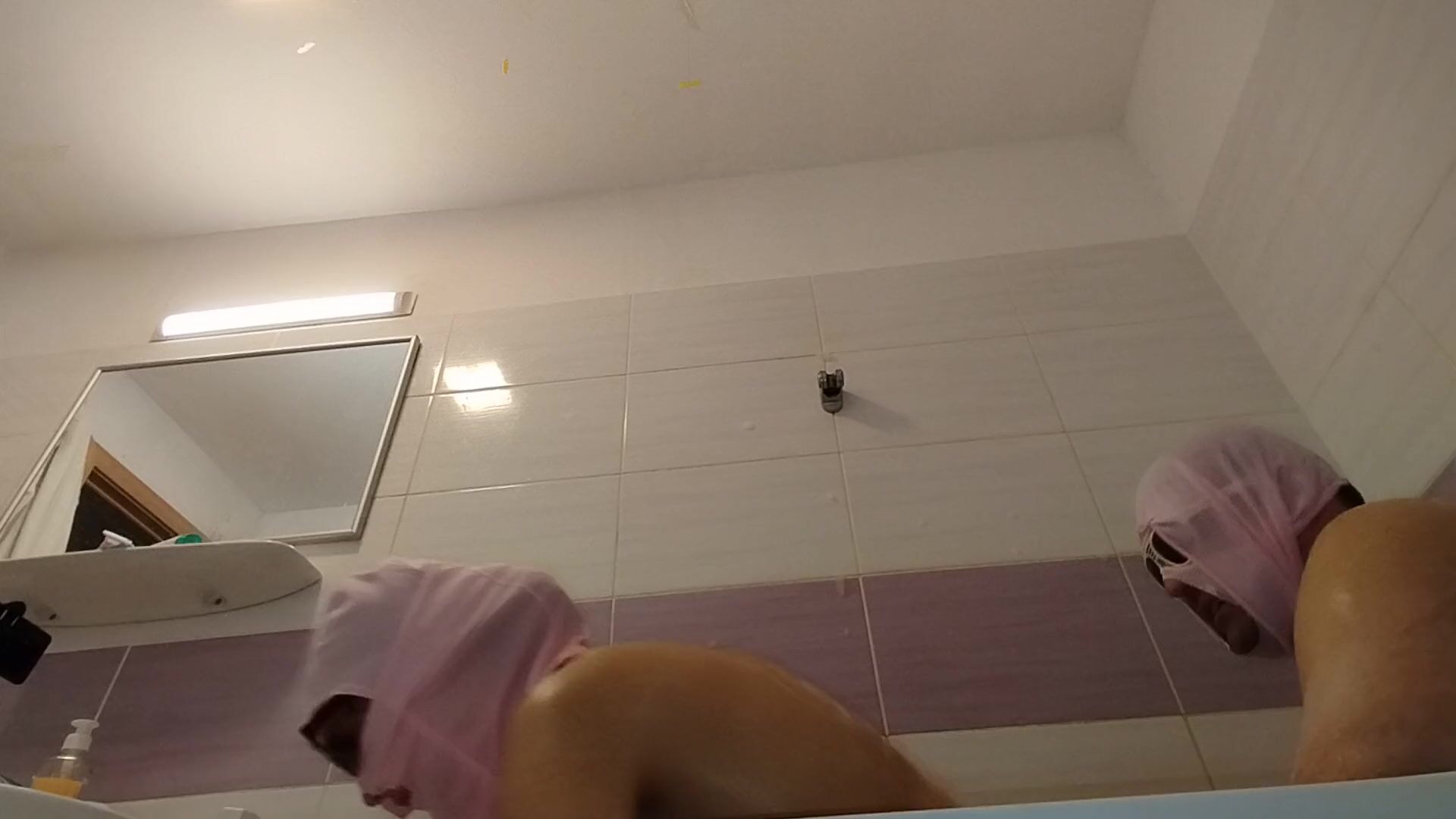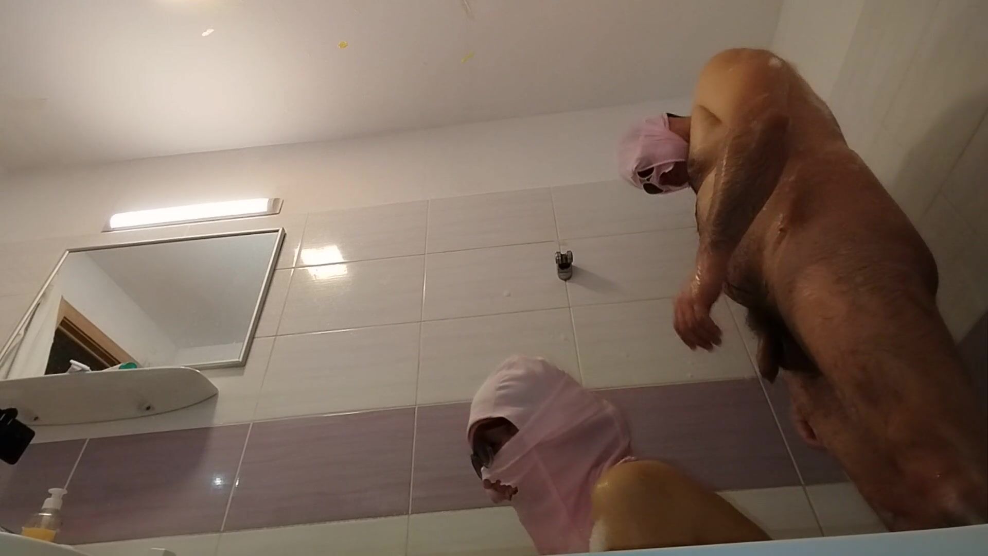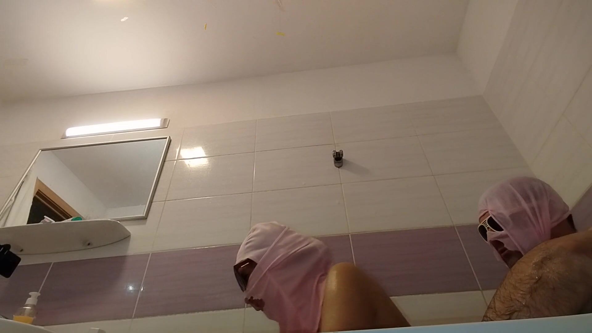 AMATEUR COUPLE TAKES A BATH, WIFE WITH HAIRY PUSSY, BIG ASS, BIG TITS.
