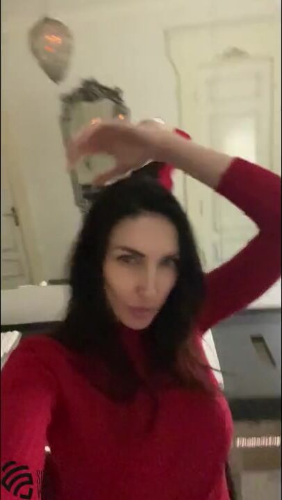 . In the midst of a party in a restaurant, the dark-haired beauty wanted to move to another room. She went in, undressed, and began to masturbate. Having received what she wanted, she dressed and return